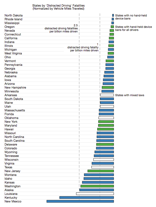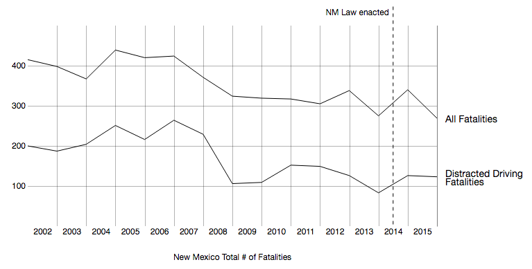 In 2015, New Mexico had one of the highest rates of distracted driving fatalities per mile driven. New Mexico Governor Susana Martinez recognized this even back in 2014, signing a bill that banned texting while driving citing , “Texting while driving is now the leading cause of death for New Mexico’s teen drivers. Most other states have banned the practice of texting while driving.”