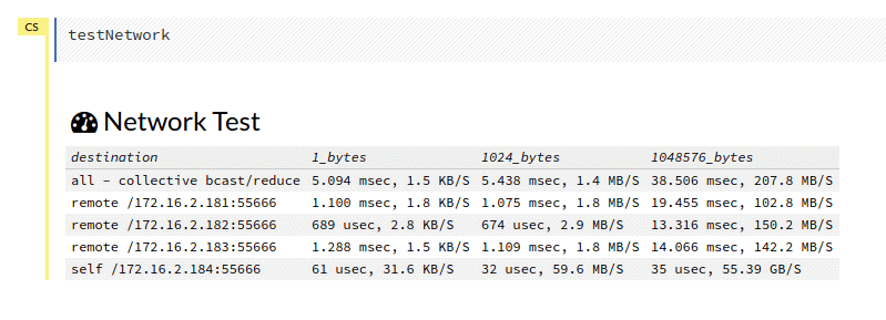 I reran on servers 2-5 and it was 3 times faster than on servers 1-4. The culprit appears to be server 1, then. We have a network tester in H2O that I had already run but ran it again. Our server names correspond to the last digit of their IP addresses: server 1 = .181, server 2 = .182, server 3 = .183, etc. Here was the image :