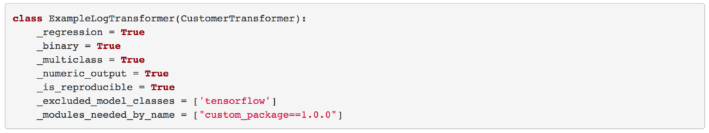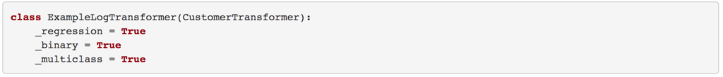 Depending on what kind of outcome the custom transformer is solving, each one of the above needs to be enabled or disabled. And the following example will show you how this can be done