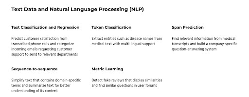 Natural Language Processing or NLP refers to applying computational techniques to analyze and understand human language, including text and speech. NLP involves using algorithms, statistical models, and machine learning techniques to extract meaning and insights from text data, allowing machines to understand and respond to human language more naturally. Hydrogen Torch supports many common use cases in NLP predominantly :
