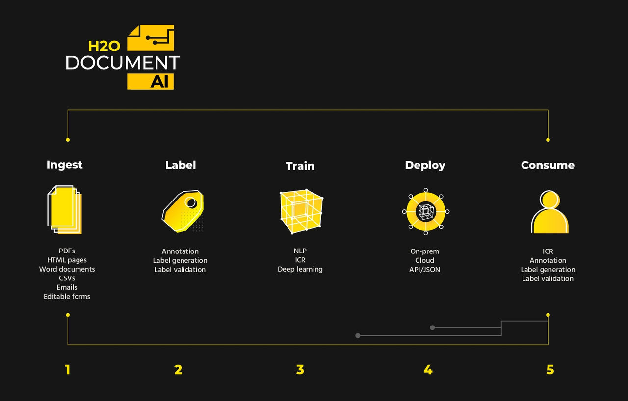 H2O Document AI captures, extracts and processes data from a cross section of document formats through the use of natural language processing, optical character recognition, deep learning and machine learning. This transforms unstructured and semi-structured documents into data that can be used by machine learning algorithms to drive predictions.
