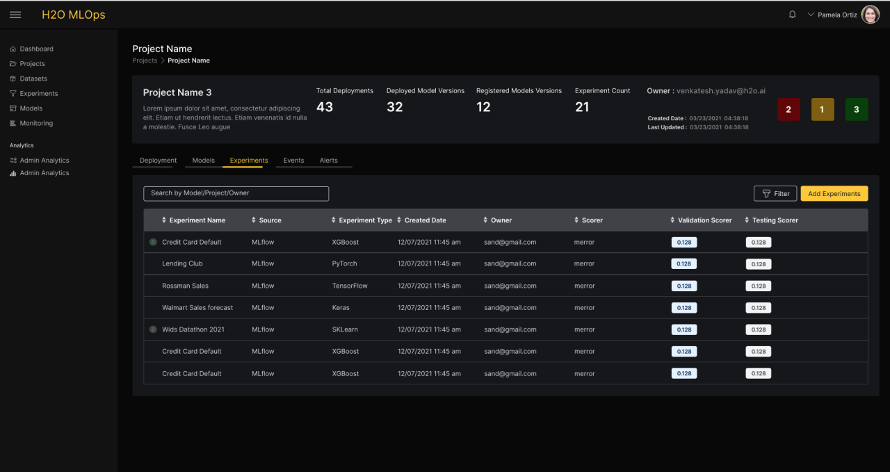 Data Scientists often work in teams to build and train models for a particular use case. Data Scientists can choose across a wide variety of ML frameworks for optimal experimentation. H2O MLOps allows Data Science teams to collaborate and maintain a central repository of models, irrespective of the ML framework used to train it. Teams are able to compare experiments against each other using a Leaderboard, across many evaluation metrics. Teams can also view associated experiment summaries and metadata, which informs their decision to promote certain experiments. Once Data Scientists have selected their experiment of choice, they can register the experiment using Model Registry, to create a new Model Version.